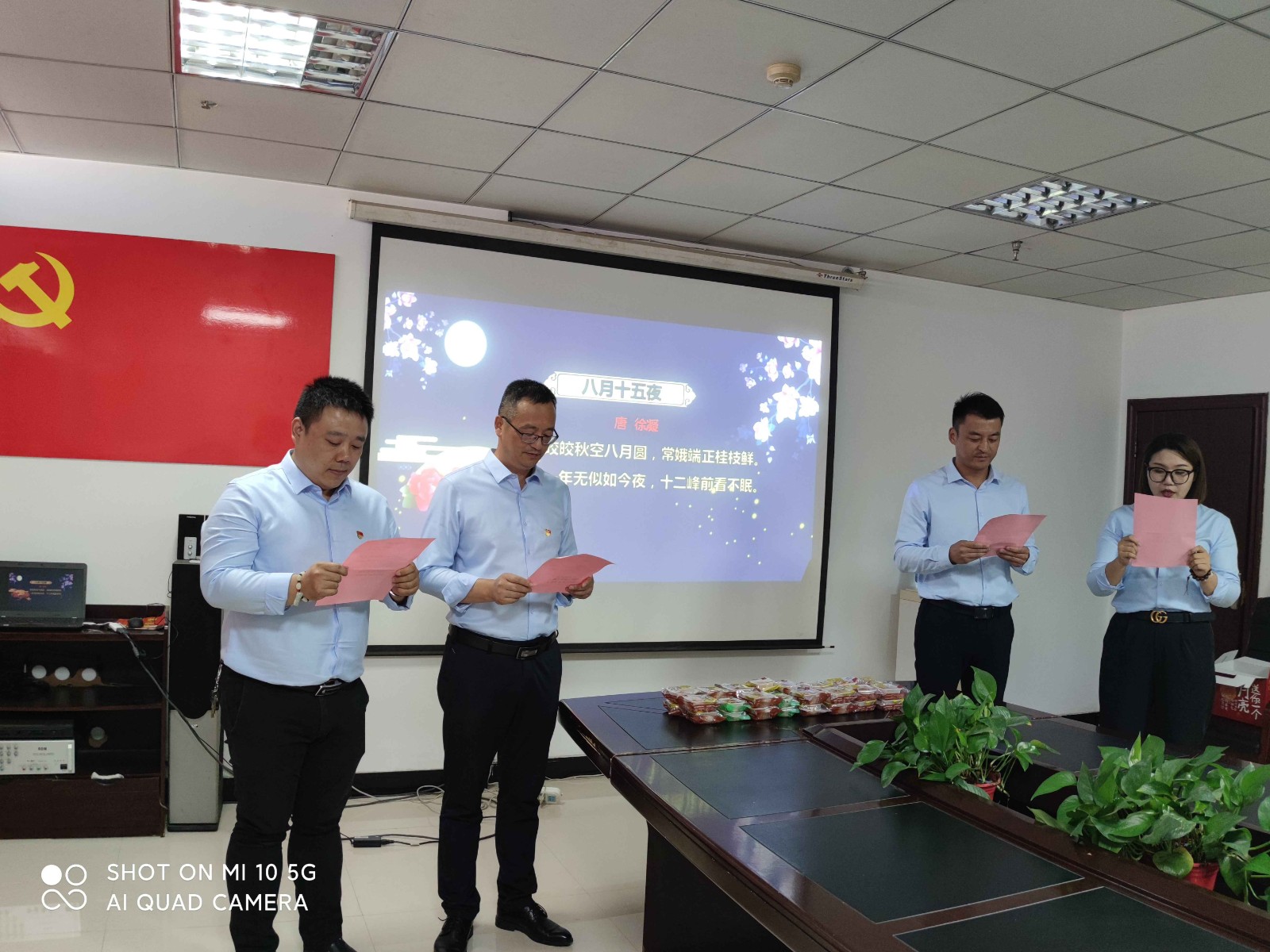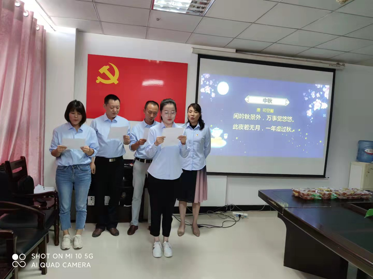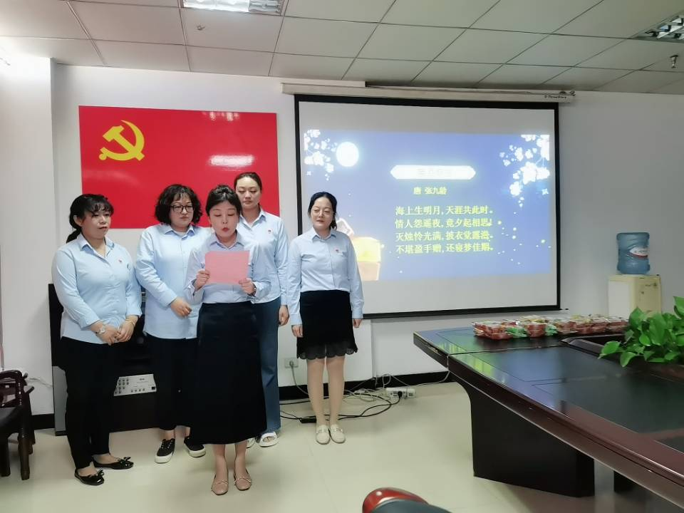 機關(guān)黨支部四個黨小組依次朗誦了《望月懷古》、《中秋》、《八月十五夜》、《一剪梅·中秋之月》等與“中秋”有關(guān)的詩詞,小組成員們飽含深情,熱情高亢的朗誦贏得了大家陣陣掌聲。詩詞朗誦結(jié)束后,又一起分享了中秋月餅,大家在輕松愉悅的氛圍中感受著中秋節(jié)傳統(tǒng)文化的魅力。