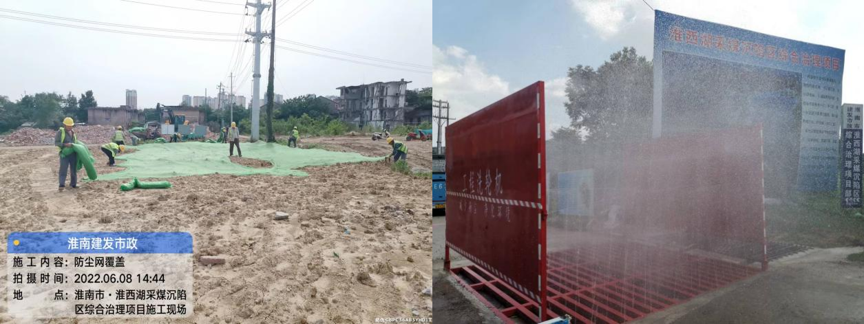 為嚴格落實環(huán)保要求,我部積極動員部署,在工地出入口裝配了車輛沖洗平臺,對裸露的黃土進行全覆蓋,動土作業(yè)時霧炮車全時保證濕,確保揚塵治理各項要求落實到位。