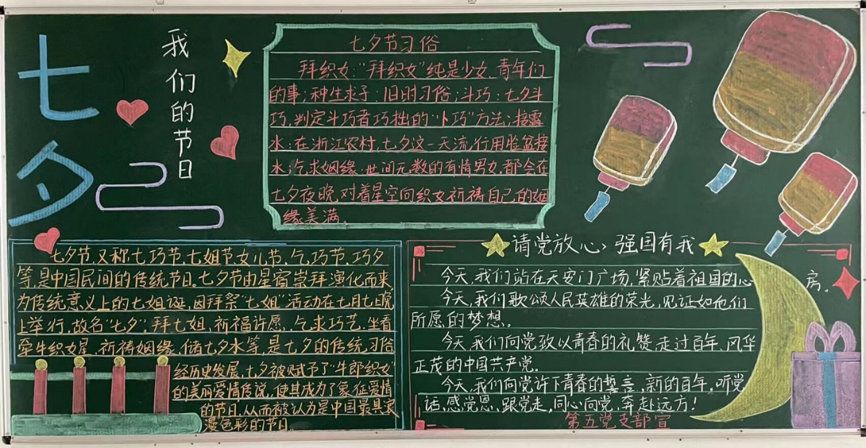 同時(shí),支部還利用黑板報(bào)宣傳七夕節(jié)的歷史淵源和風(fēng)俗習(xí)慣,引導(dǎo)職工對(duì)傳統(tǒng)節(jié)日文化的認(rèn)同感,堅(jiān)定文化自信。