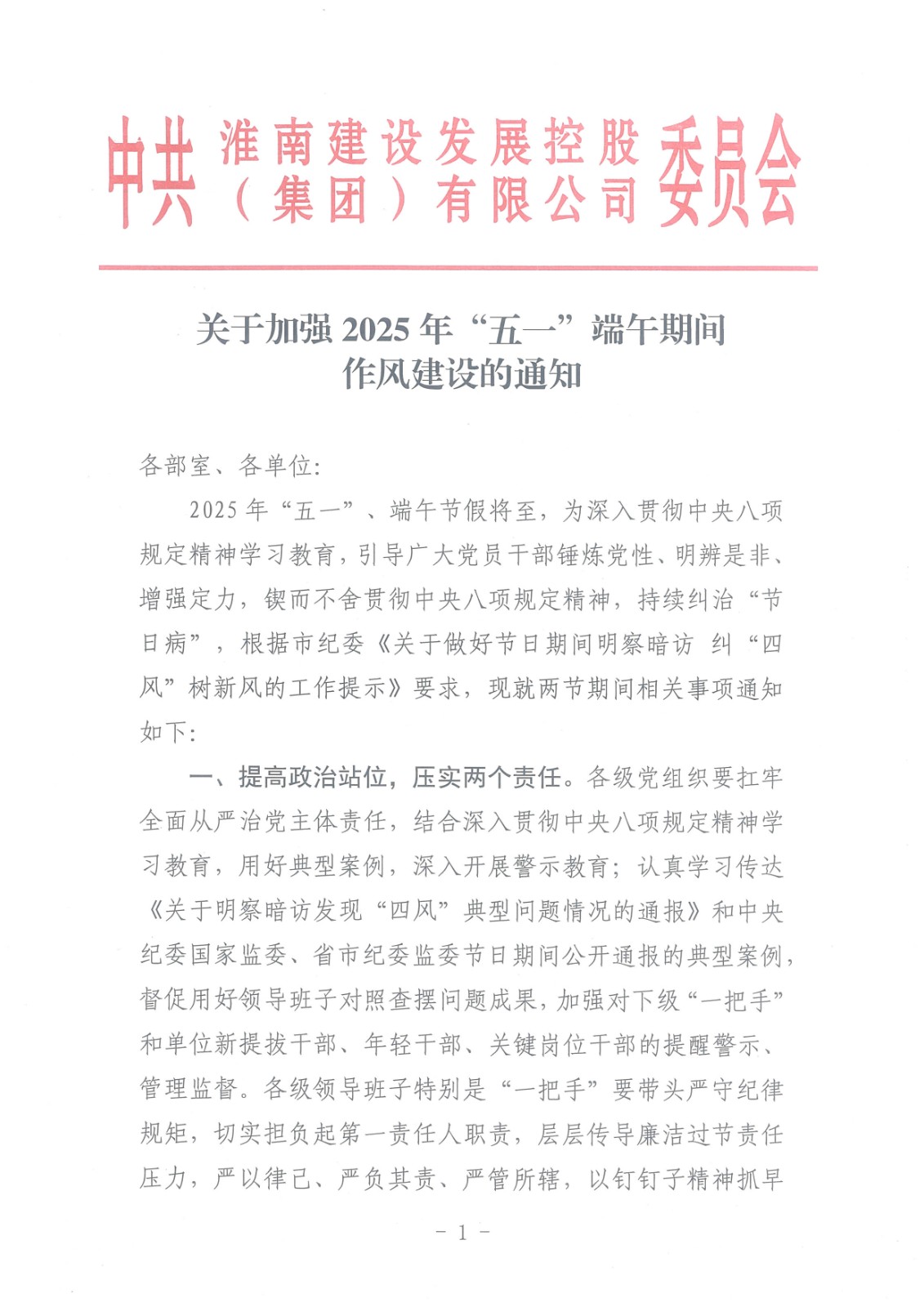 關(guān)于加強(qiáng)2025年“五一”端午期間 作風(fēng)建設(shè)的通知